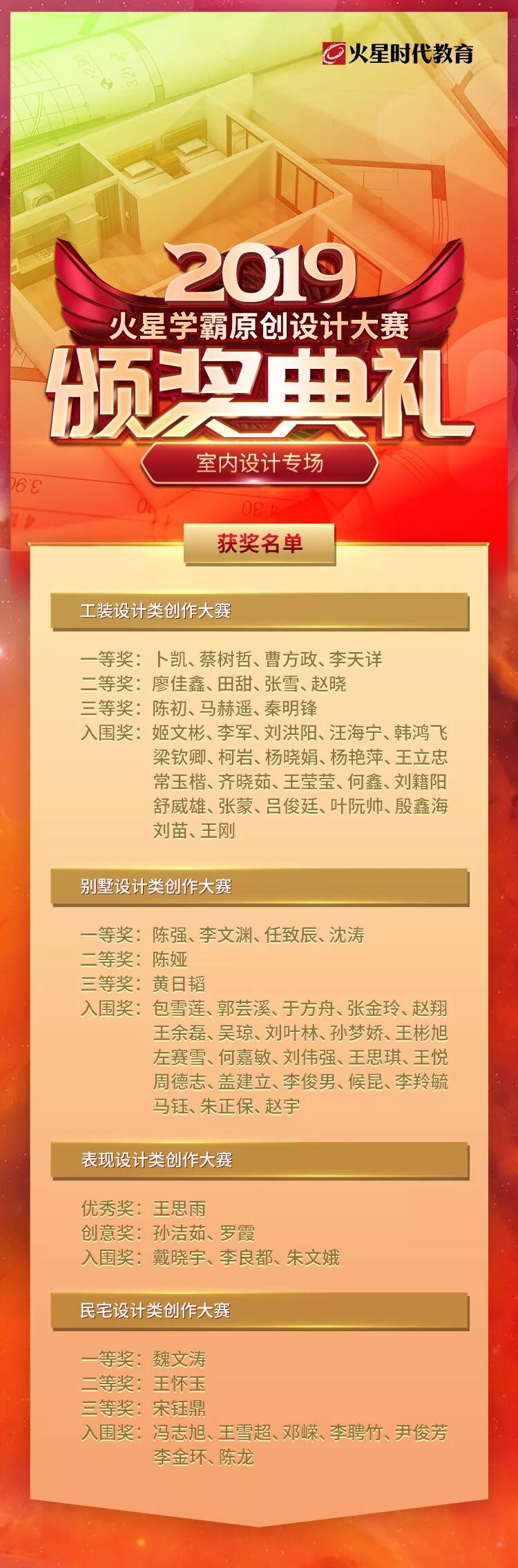 9月16日,2019“火星学霸”原创设计大赛室内设计赛区完赛,颁奖典礼在火星时代北京总部报告厅隆重举行。